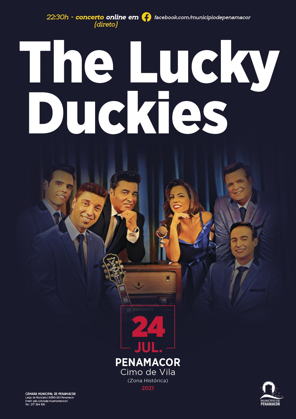 Após a atuação de Francisco Ceia, lugar para a inauguração da exposição de pintura “Simbiose”, da autoria de Carlos Castilho. Esta mostra, que integra um conjunto de 50 quadros pintados a pastel e que ficará patente até ao dia 12 de setembro no Museu Municipal de Penamacor, resulta, segundo o autor, na junção de dois elementos na qual se dá a explosão do branco no preto. A exposição é dedicada ao pai, José Castilho, filho de Penamacor e responsável pela vinda do autor para o concelho. Carlos Castilho nasceu em Abrantes, tendo vindo para Penamacor apenas com 2 meses. Engenheiro eletrotécnico de profissão, desde novo tomou o prazer pelas Belas Artes, sendo que se começou a dedicar “de forma mais séria” em 2012. Usa como técnicas o Grafite, o Carvão, o Pastel e a Aguarela. A terminar a programação, os Lucky Duckies atuam na Zona Histórica de Penamacor, no dia 24 de julho, pelas 22:30. The Lucky Duckies é uma banda portuguesa estreada no final da década de oitenta. A sua estreia televisiva ocorreu em 1987 no programa Estúdio 4 da RTP1, apresentado por Luís Pereira de Sousa. Inspirada em artistas dos anos 50 e princípios da década de 60 do século XX, The Lucky Duckies tiveram influências de cantores como Elvis Presley, Dean Martin, membro dos Rat Pack, Frank Sinatra e Sammy Davis Jr.. Atuaram em digressões pelo país e pelo mundo. Têm pisado os melhores palcos do país, destacando-se a concentração de Motos de Faro de 2010, vários concertos no palco 4 da Expo'98, o CCB, a Casa da Música no Porto, o CAE da Figueira da Foz, e os principais casinos da Península Ibérica, da Europa e de Macau. Os Lucky Duckies apresentam-se como uma banda revivalista portuguesa e prometem Vintage Swing, Rock'n'Roll e músicas originais. Com mais de 30 anos de carreira, foram distinguidos com vários prémios, entre os quais o Prémio Prestígio de Carreira Internacional, pela RDP e RTP, aquando dos 25 anos de carreira do grupo. Este evento terá em conta todas as medidas de segurança propostas pela Direção Geral de Saúde, relativamente à COVID-19, garantindo-se a saúde e segurança de todos os participantes, artistas e staff. O Município de Penamacor continuará empenhado em colaborar com as entidades competentes para, dentro das suas capacidades e competências, poder contribuir para a mitigação dos efeitos do surto de Coronavírus junto das populações. Apela-se ao cumprimento por parte de todos os participantes de todas a normas e regras de higiene e segurança estabelecidas no contexto pandémico atual.
